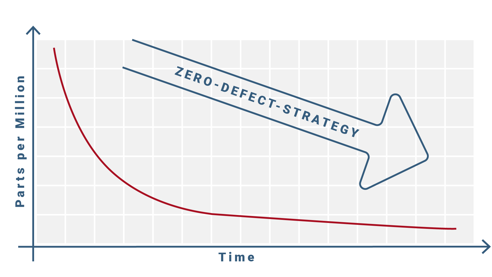 However, this already shows that it is rather unrealistic to implement such a strategy consistently. It is more realistic to approach zero defects using the value "defects per million possibilities" or ppm for short. The target is 10 to 20 ppm, i.e. 10 to 20 errors per million possibilities.